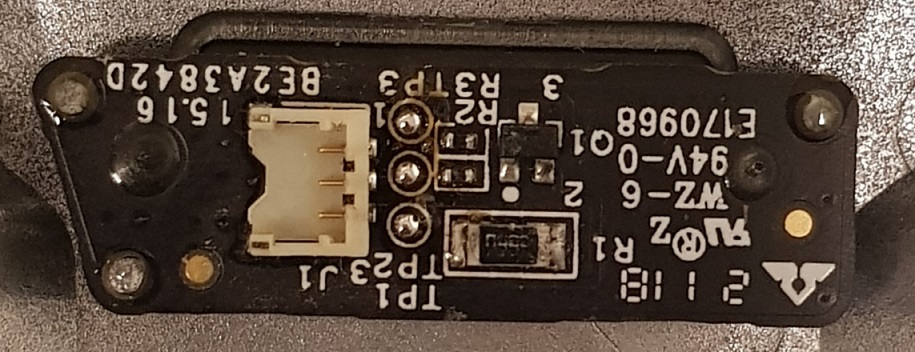 Again voltage was set to 8V and the measured voltage drop across the 56 Ohm resistor was 5.09V, therefore the forward voltage on the LED is 2.91V, and the current flowing through the circuit is ~91mA, and LED power consumption is 265mW, and total power consumption of the light module is 728mW.